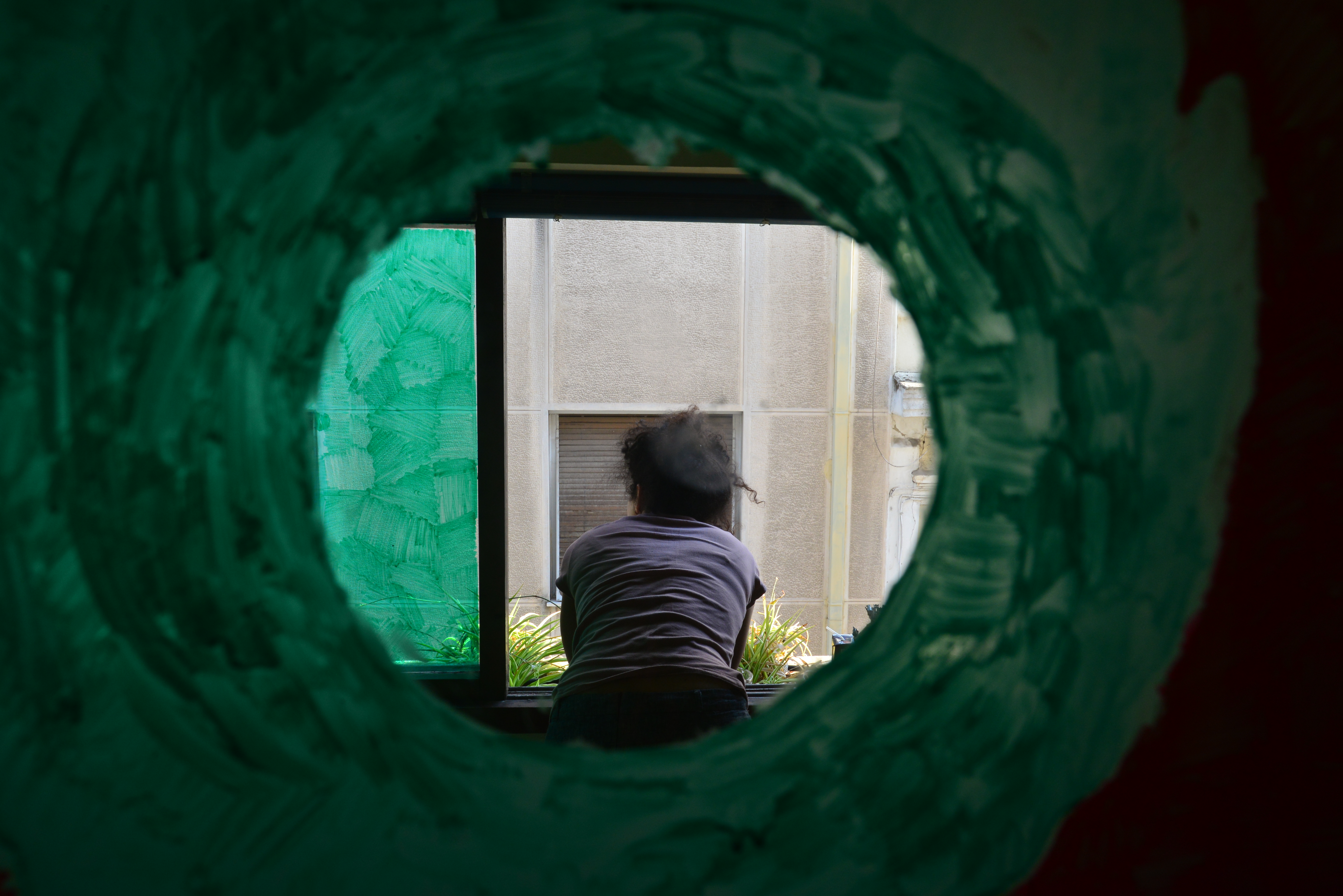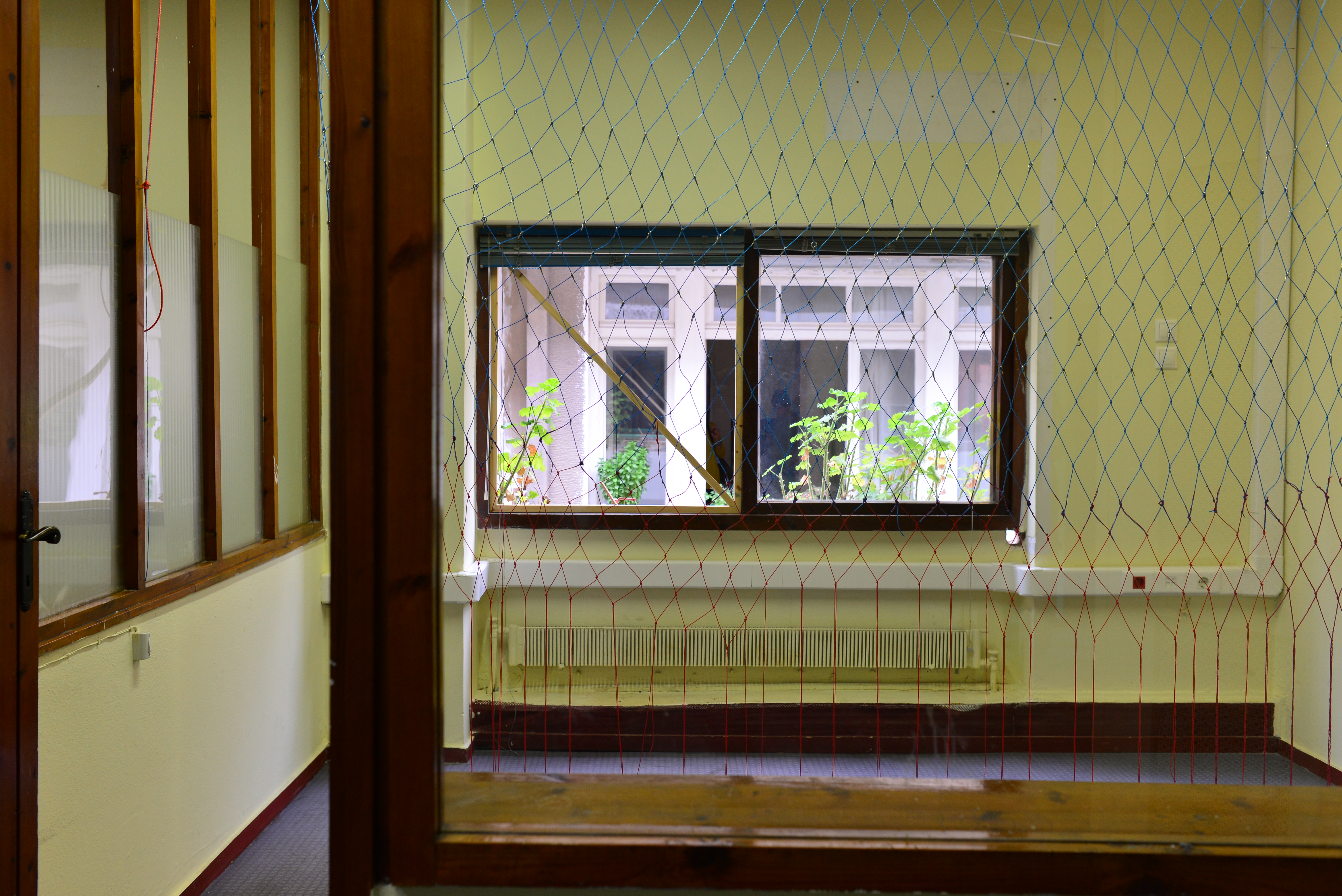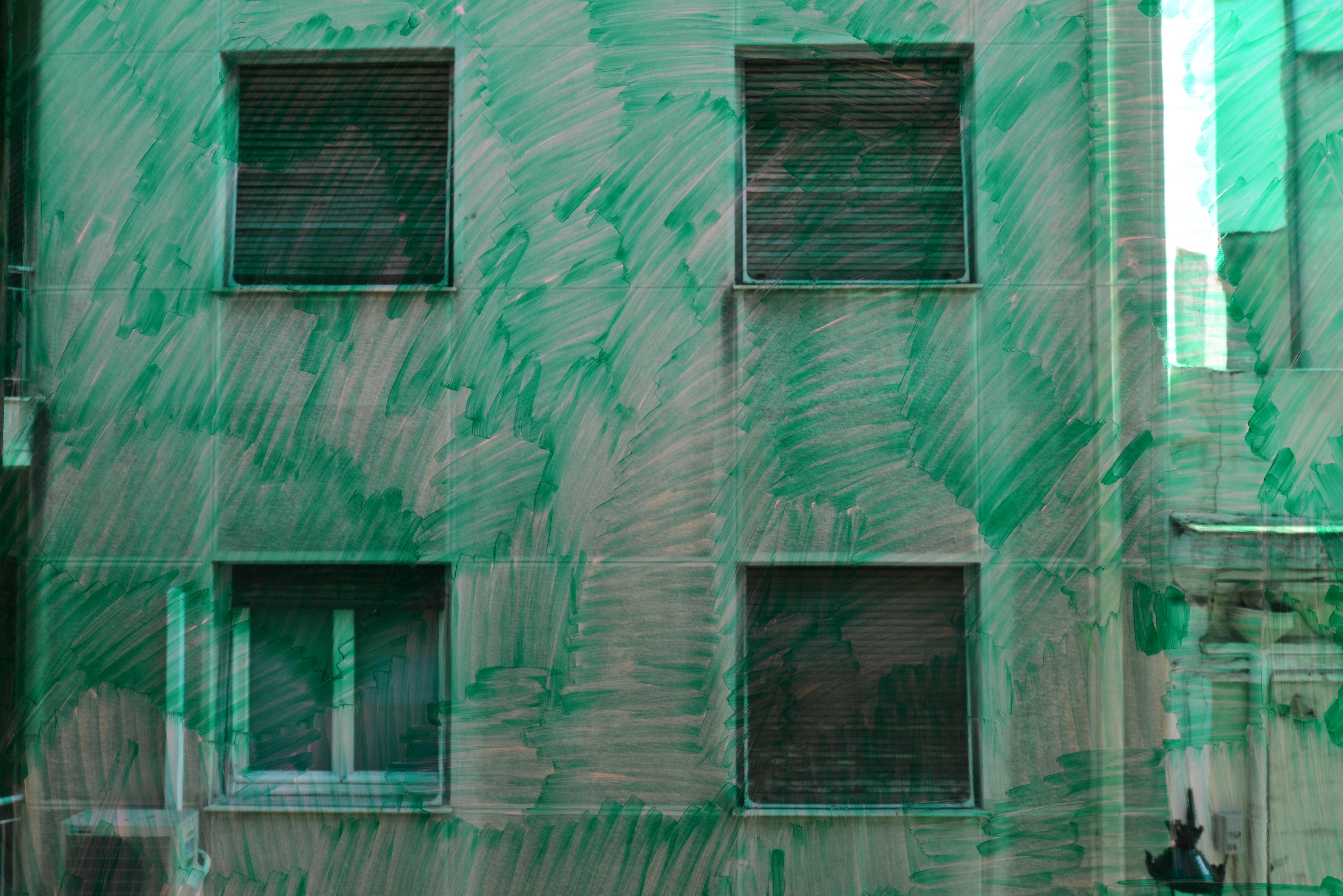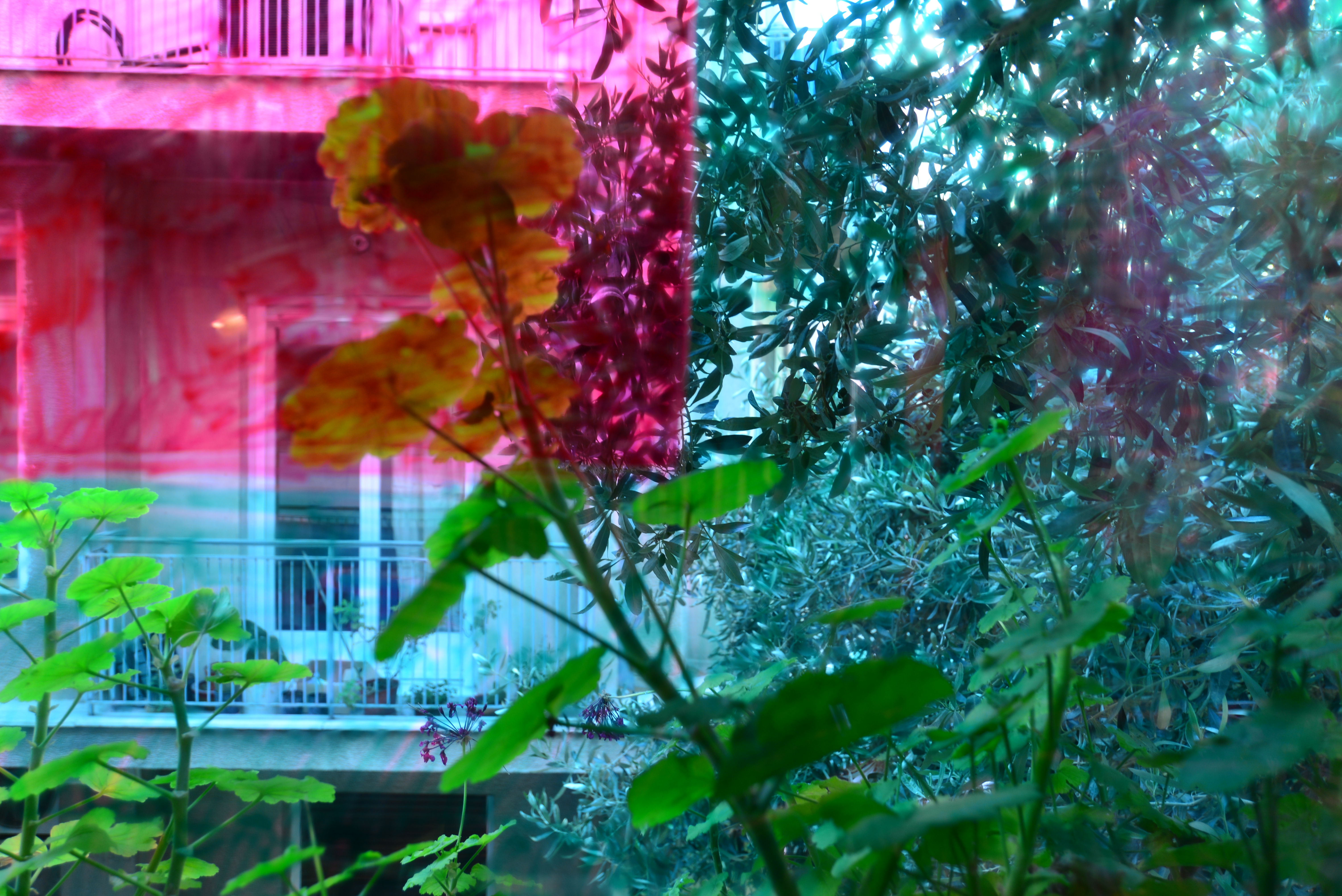 In DOG there is no dog. There is only the attempt to locate and describe the upright position of your body in relation to the landscape. Dogs suffer from color blindness, red and green being the two colors they can't tell apart. I look at the building across the street, through the glass, through the frame, behind the shutter, the curtain, the net.