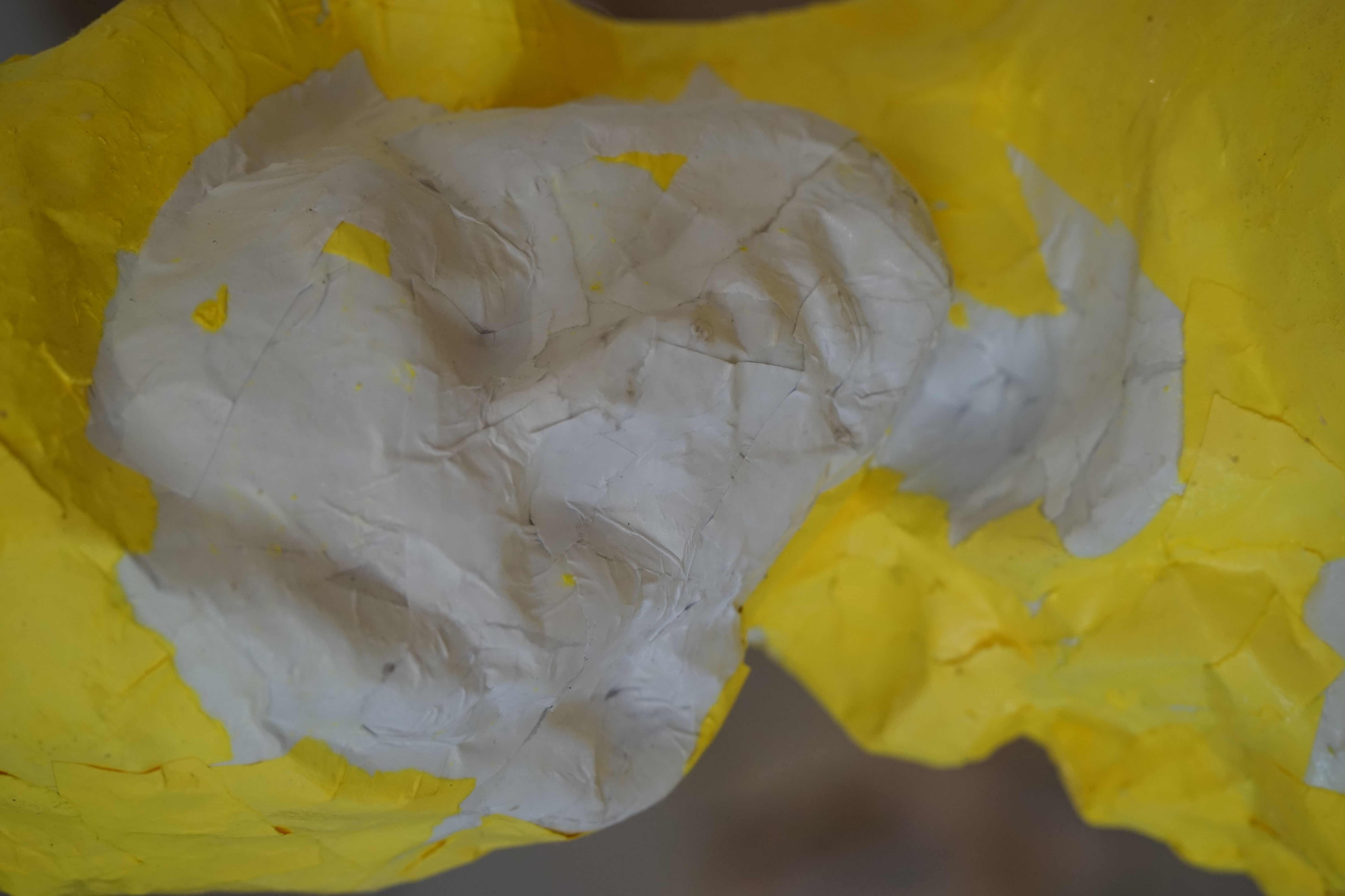 white and yellow paper cast