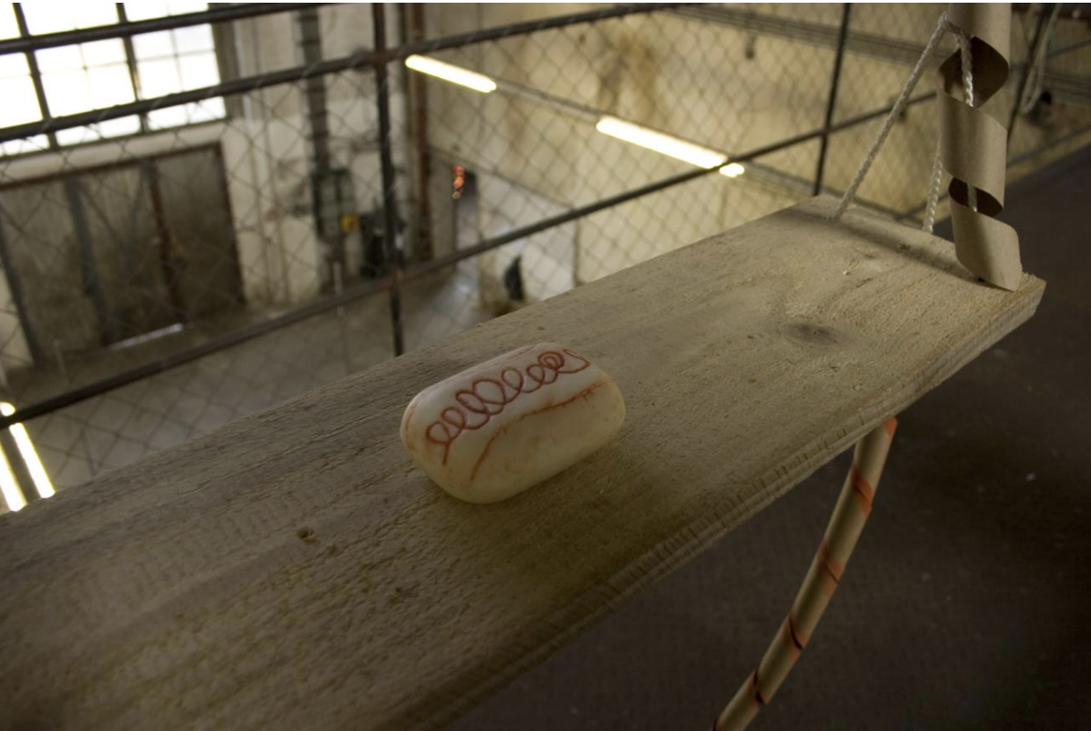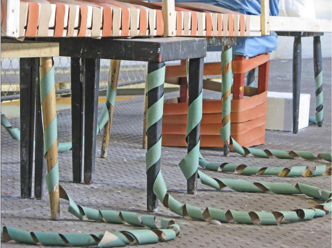 An attempt to put paper on a helicoid. Paper coils are formed on the handrails.